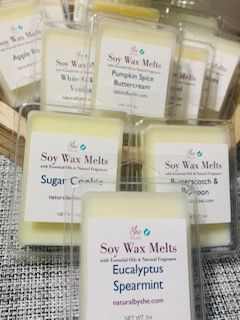 We also offer Hand poured Soy Candles and Wax Melts! For a full listing of scent options, click on the STORE