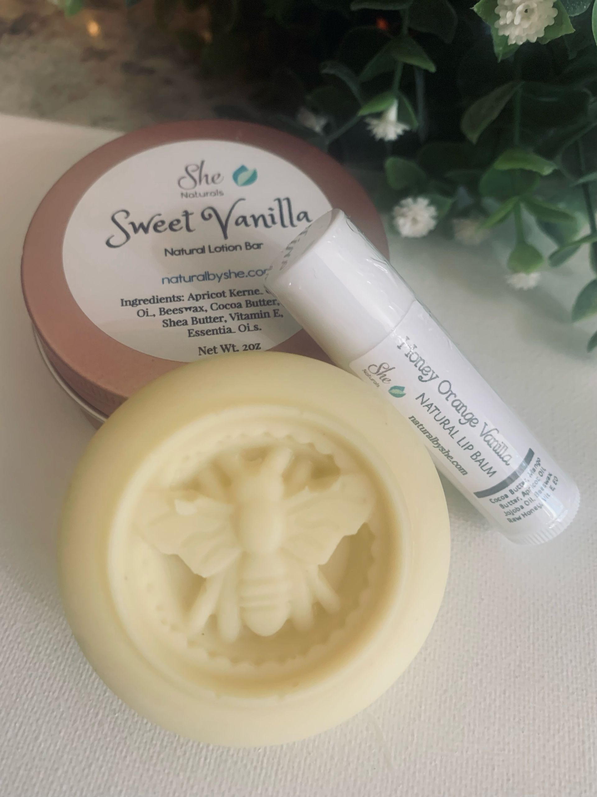We offer a variety of natural body products to nourish and hydrate your skin including lip balms, lotion bars,
